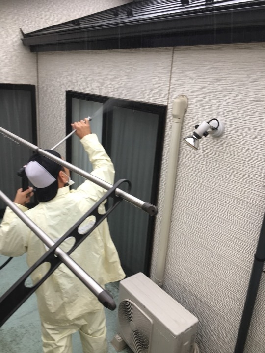 本日は、外壁塗装前の高圧洗浄中の様子をご紹介させて頂きます!!