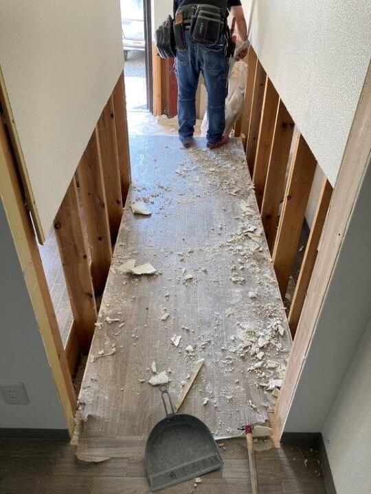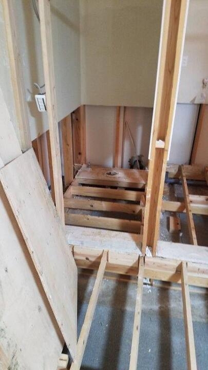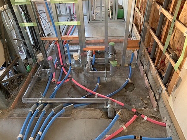 排水が湧き上がった事によりリフォームが必要な箇所をチェックしながら、活かせる部分はそのままに施工を進めていきます。