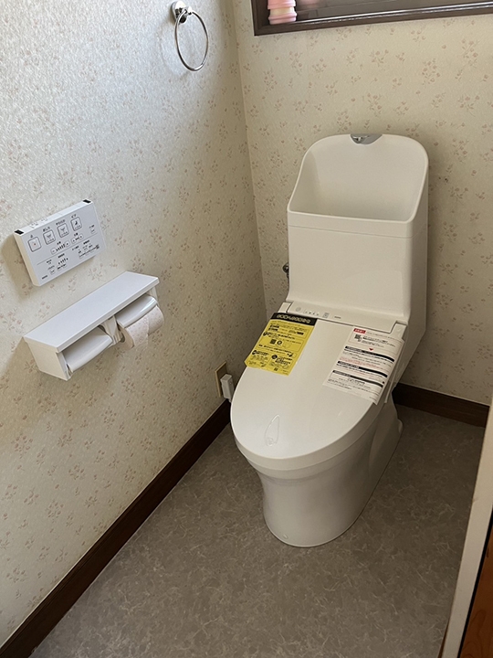 要介護者の方もいらっしゃるので、車椅子対応のトイレ、手洗いボールを選択し、床も段差無しで仕上げました。
